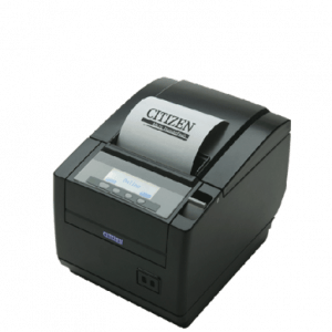 Citizen CT-S801 Impresora de gran calidad y velocidad. 300 mm/s y 2400 líneas de puntos/s. 384 Kb para logo gráfico. Codigos de barras EAN, Codabar, QR, Code 128. Puede imprimir en 2 colores (con el papel adecuado). Desbloqueo automático de guillotina. 3 fuentes de alta calidad residentes. Impresión de etiquetas. Manejo de 2 cajones. Interfases reemplazables Serie, Paralelo, Usb, Ethernet. Fuente de alimentación incluida en el cuerpo de la impresora.