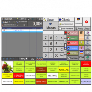 Hostelco Aplicación de punto de venta táctil para hostelería, panaderías, fruterías y similares. Completo y flexible sistema de teclados virtuales y combinaciones para abarcar los diferentes supuestos. Gestión de mesas, comanderas para pedidos, gestión de menus, division de facturas, cambios de mesa, condimentos, suplementos, etc..  Instalable en soporte integral que ahorra espacio ofreciendo un sistema completo para fruterías (TPV + Balanza + Cajon + Impresora) en solo 40 x 50 cm. enlazable con Elco Gestion.